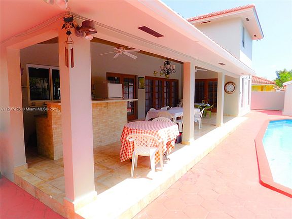 Beautiful two-story, corner lot, pool home in the Westchester area of Miami-Dade County. This corner home has a beautiful pool, large covered patio with outdoor bar, remodeled kitchen, and a mature mango and avocado tree, one on each side of the backyard area. This home has 3 bedrooms, with a downstairs den turned into a 4th bedroom, and the garage converted into a studio with a private entrance and kitchenette. MUST SEE!!!. Minutes from the Florida Turnpike, Florida International University (1.6 miles), Dolphin Mall (4.4 miles), and Miami International Mall (4 miles).