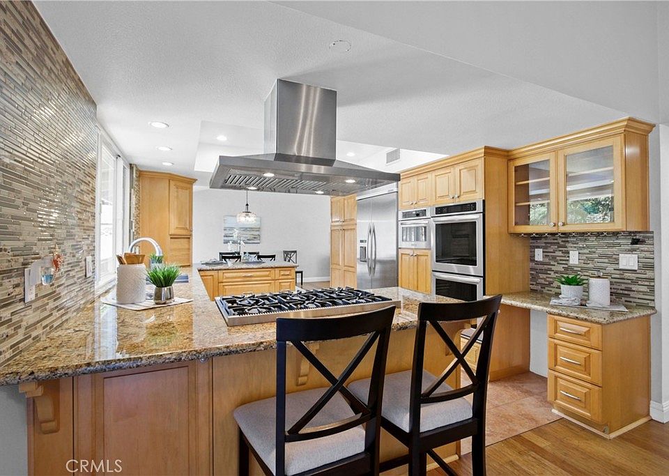 Fully remodeled throughout, this exceptional single-story estate has been thoughtfully updated to offer modern luxury and comfort. From the moment you step inside, you'll be captivated by the soaring open-beam ceilings and the warmth of rich bamboo flooring that flows effortlessly through an exquisitely designed floor plan. At the heart of the home is a show-stopping, fully remodeled kitchen, adorned with gleaming granite countertops, top-of-the-line stainless steel appliances, and an abundance of natural light. The kitchen’s expansive views of the lush, private backyard create a serene setting for morning coffee or evening soirées.