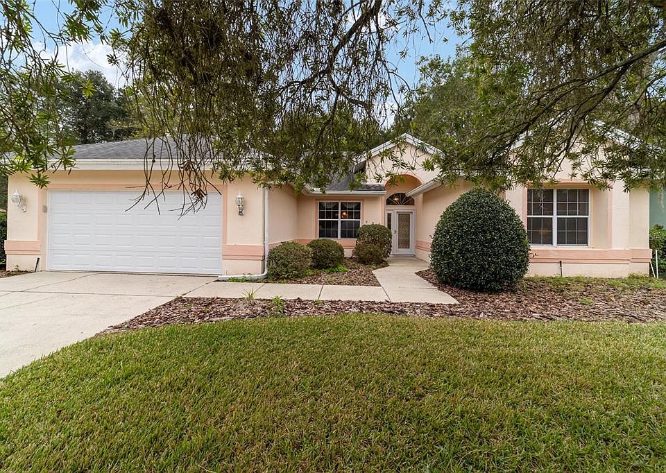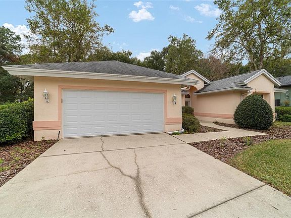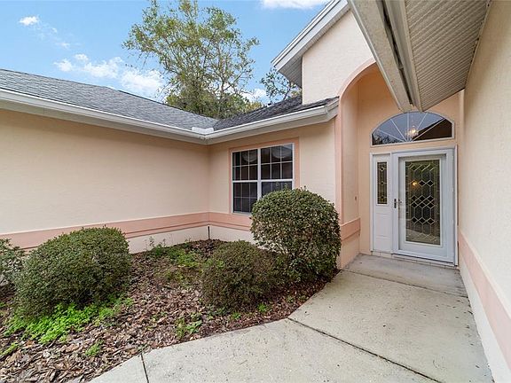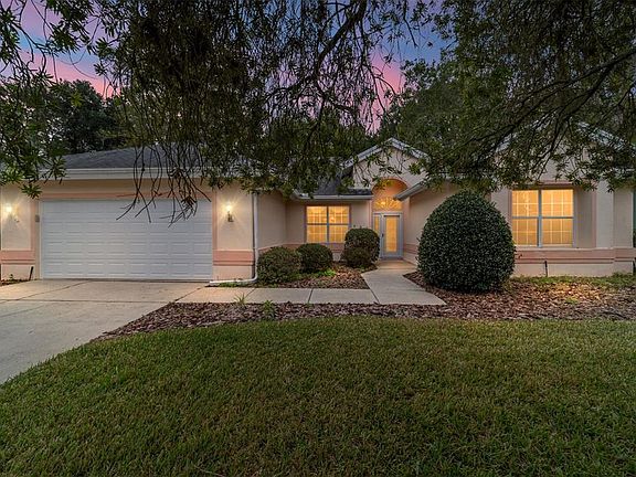 IF YOU ARE LOOKING FOR A BIG HOME - THIS IS IT! Located just a stroll up the street to the Island Club with 3 pools and jacuzzi. Upon entering you are greeted with high ceilings, a large dining room that is open to the living room with access to the large lanai. To the left of the dining and living room is the massive kitchen that boasts tons of counter space, 2 pantries one with pull out drawers, lower cabinets with pull out drawers and lots of room over the cabinets to display your favorite things plus sliders to the lanai. There is also a half bath to the left of the kitchen as well. To the right of the dining and living room is the hallway to the bedrooms. There is a KING SIZE Master bedroom that has a huge walk in closet, sliders to the lanai, an on suite bathroom with 2 vanities, step in shower, soaking tub and private commode. Middle or 2nd bedroom can be used as a convenient office. Between bedroom 2 and bedroom 3 there is a Jack and Jill bathroom with double vanities, step in shower and private commode. The 3rd bedroom has a large closet so there is plenty of room for all your guests needs. The lanai which can be accessed from the kitchen, living room and master bedroom is massive at 376 square feet. It has HEAT AND AIR and 2 Skylights to bring in that Florida Sunshine - a great place to have your coffee in the morning, open up the windows and listen to the birds and gaze at your beautiful private backyard. So here's the facts: Private yard, 2340 sq ft, 500 sq ft garage, 3 bedrooms. 2.5 baths, NEW ROOF 2019, AC2010, STORAGE, STORAGE, and MORE STORAGE space and right down the road from 3 pools and a hot tub. Oak Run Country Club offers 6 pools 5 hot tubs, Restaurant, Golf Course, 2 fitness centers, Dog Park, pickleball, tennis and more. Right outside the gate is WalMart, shopping, medical facilities, and restaurants. So stop shoveling snow this winter and make Central Ocala in Sunny Florida your forever home!