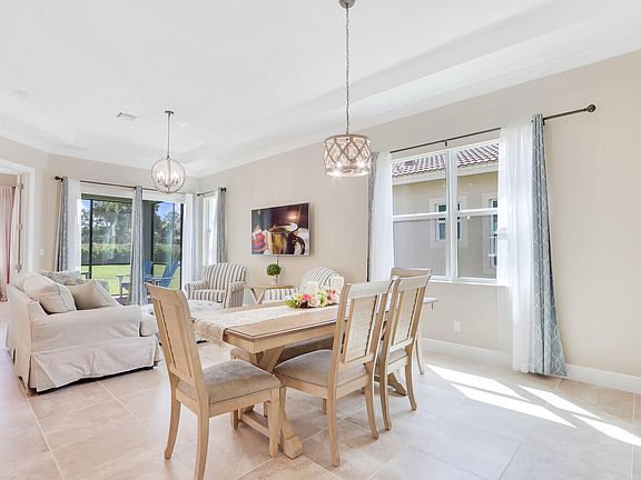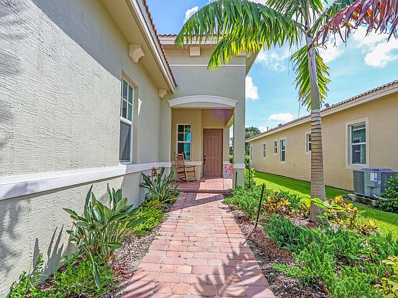 Sophisticated Arezzo Model w/ Coastal Vibe. Open Floorplan with lots of Natural Light flooding this Single-Story Quality CBS built w/Impact Windows & Doors. Gourmet Kitchen w/Granite Counters, Electric SS appliances, 42-inch cabinets & walk-in pantry. Energy Efficient AC & HWH. Screened in Patio w/views of large green area. Owners Suite provides luxury living, Trey Ceiling, Dual Sinks, Spacious Shower. HOA Includes Cable, Internet, Manned Gate, Security and Landscaping/Lawn Care. PGA Verano is Best in Class for Amenities: Fitness Center, Resort Style Pools, Indoor Pool for laps, 27 Pickleball Courts, 4 Har Tru Tennis Courts, Bocce Ball, Yoga and Aerobics Studio. The Community features a Lifestyle Director and Activities Teams. Dedicated Cooking Class Kitchen, Card Room, Library, Dog Park, Playground, 7000 sq ft E-Gym and 3 nearby Golf Courses. NON-MANDATORY Golf & Social Memberships Available! Nearby Tradition offers Restaurants, Shopping, Events, Concerts. Close to 95 and Turnpike and 30 min to the Beach