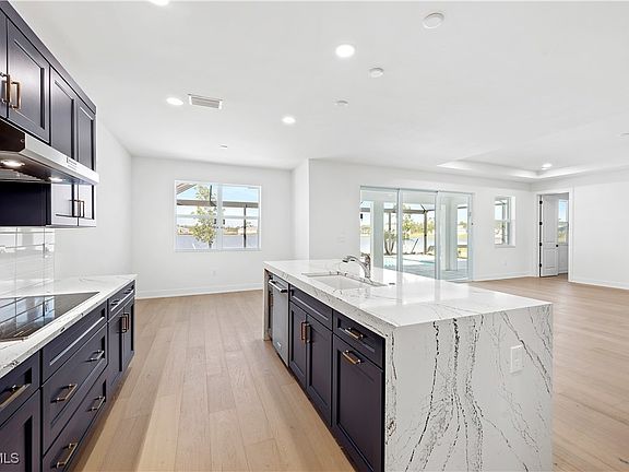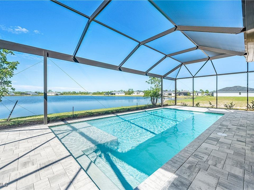 Private poolScreen-enclosed private poolSerene lakefront lotSouthwestern exposureOversized covered lanaiDramatic waterfall quartz islandSpacious loft area