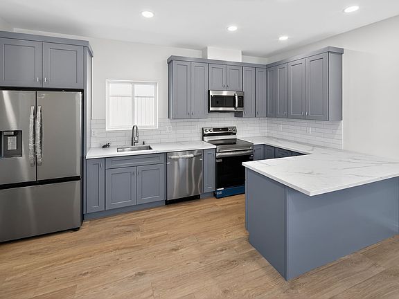 A brand-new single-level new construction residence with street parking, this home balances function with a luxurious everyday feel. A landscaped paver approach frames private personal space at the front and along the side, creating gentle indooroutdoor flow to the fenced backyard. Inside, an impeccable, updated kitchen anchors the open family room, showcasing shaker cabinetry, quartz-style counters, subway tile, and stainless brand new appliances. Wide-plank floors and recessed lighting continue through a calm bedroom wing that includes a walk-in closet and an upgraded bath with frameless glass and a rainfall shower; a second spotless bath echoes the same refined tilework. In-home laundry, modern ceiling fans, and efficient systems add day-to-day ease, while the single-story layout offers a beautiful, flexible footprint for living, working, and gathering. Crafted with remodel-level attention yet entirely new, the home is updated for low maintenance and comfortable living. Pet policy: preferably no pets; please inquire. With fresh materials throughout, private outdoor areas, and convenient street parking, this captivating residence delivers elevated comfort and style in a move-in-ready, updated packageschedule a tour to experience it in person.