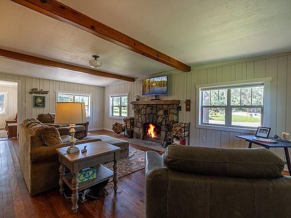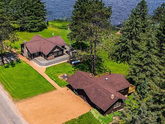 TWO Homes! Escape to the Northwoods. Fully renovated, year-round 2-bedroom, 1-bath cabin offering cozy comfort and stunning lake views. Inside, a beautiful stone wood-burning fireplace and wraparound deck provides the perfect spot to relax and take in the scenery of Bishop Lake, a 288-acre full recreation lake. The property sits on a spacious lot with 242 feet of level frontage, offering privacy, and room to enjoy the outdoors. A recently updated three-season guest cabin adds extra flexibility, complete with its own lakeside deck and RV hookups with 50 & 30 amp service plus is ideal for guests, extended stays, or rental income. Just minutes from a public boat landing and close to ATV/snowmobile trails and endless outdoor recreation, this location puts adventure right at your doorstep. Whether you're looking for a peaceful retreat, a place to gather with friends and family, or an income-producing getaway, this Northwoods gem offers space, beauty, and year-round lakefront living.