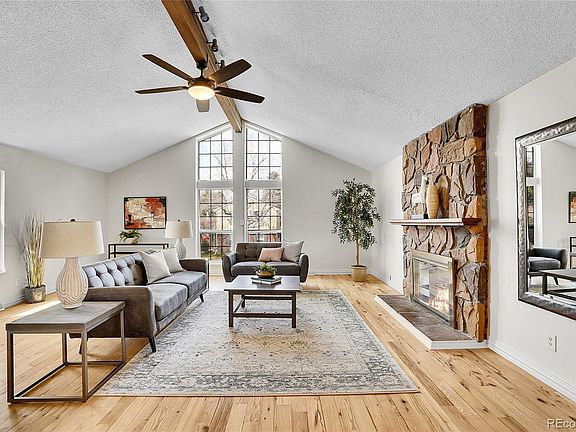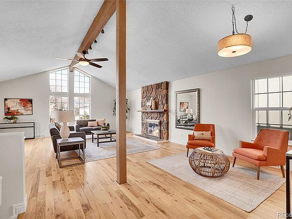 Welcome to your beautifully updated multi-level home in the desirable Dam West community! This 3-bedroom, 2-bathroom residence offers over 2,000 finished square feet of comfortable living space. Enjoy brand-new interior paint, fresh carpet in the bedrooms, and a brand-new refrigerator in the well-appointed kitchen featuring a spacious island, tile counters, and eat-in dining area. The inviting living room is highlighted by vaulted ceilings and a cozy wood-burning fireplace — perfect for Colorado evenings.