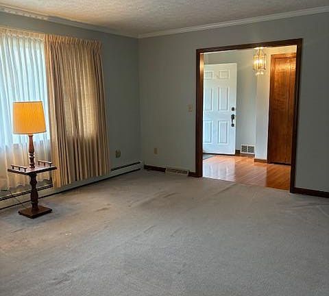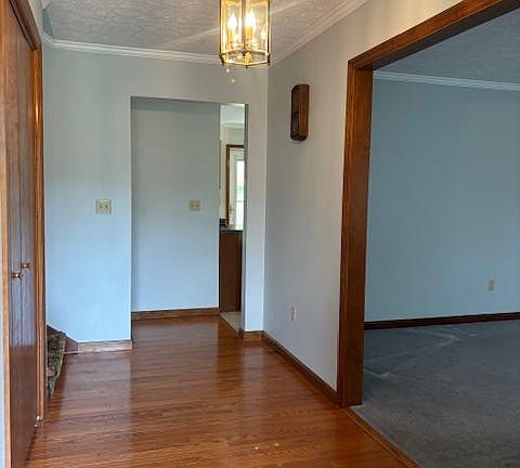 Original owners. Very well-maintained home in a desired area. Nice 4 Bedroom brick home situated on 4.24 acres. Beautiful view from the back covered porch or patio. Large kitchen and dining room with beautiful ceramic flooring. Primary bedroom has a large step-in ceramic shower with handrails, plus a walk-in closet. The family/office room fireplace has been converted to a pellet stove that adds additional heat through-out the house. The house has duct work already installed for a HVAC unit.