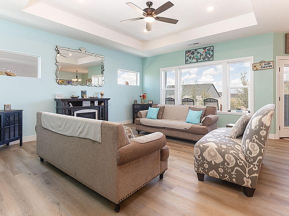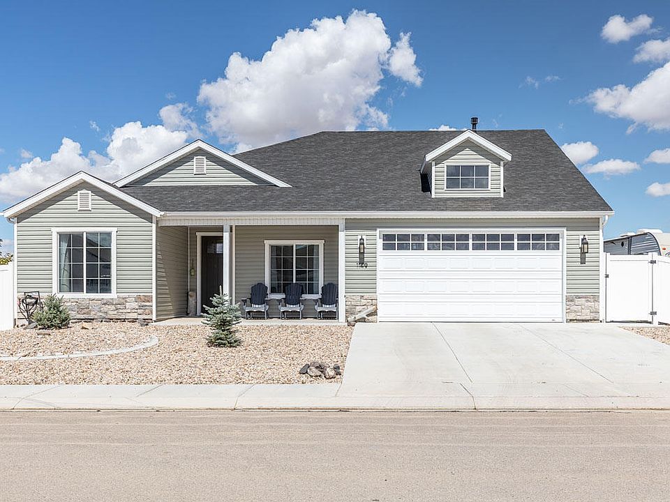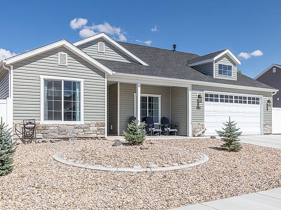 A quality built Alex Meisner home in Settler's Square! 2023 blt. and this one is all landscaped, sprinklers, drip system with garden beds, fruit tress, completely fenced and gated. You don't have the work or expense, it's all done! Move right in! This Godfrey (mix) model is a cozy 1633 sq. ft. home and includes 3 bdrms., 2 baths, 2 car garage, 9' ceilings, custom cabinets, water softener and lots of windows for great outdoor light! The home was set on the lot so there's a larger side-yard on the East for RV parking or (?), plus electrical! Enjoy all the benefits of a newer home without all the work/cost of putting in a new yard! Plus the great views all around!