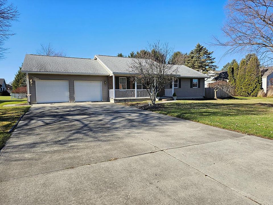 Beautiful immaculately kept ranch home in a very desirable area of Bucyrus. Conveniently located at the southern end of town making for easy commute to Dublin/Columbus area if needed. NIce layout to the 1956 sq ft of living space. Covered porch , Spacious formal living room , open floor plan to kitchen and dining area, laundry off kitchen , Great room to the back with vaulted ceiling and sliders to the sunroom, full bath with walk in shower and a walk in closet off the great room, 3 nice sized bedrooms, and a full guest bath down the hall from the L/R, Primary bedroom has full bath and spacious double closet. Plenty of closet and storage space through out the house. Full basement features tall ceilings and poured concrete walls. Tremendous storage space or could easily be finished for additional living space if needed. Concrete drive leads to spacious 2.5 car attached garage. Roof new 2016.water heater aprox 2010. basement shelves stay.