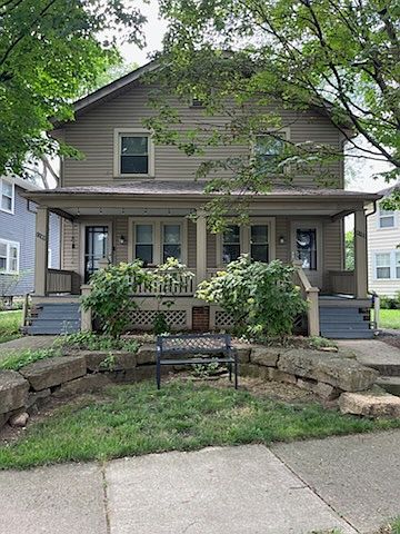Property has been totally remodeled and is in excellent condition. Neutral decor. Recent hardwood floors have been installed in the living room and dining room. Kitchen has oak cabinets with granite countertops. Ceiling fans in every room. Newer energy efficient vinyl windows. Side walls have been insulated. Furnace and A/C unit is approximately 2 years old. Electric updated to 200 amps. Front porch has been rebuilt. Full basement with washer and dryer. Two parking spaces behind double. Walking distance to park, restaurants and bus line. Close to Ohio State University and downtown Columbus. No pets. Property is on a tree lined street.