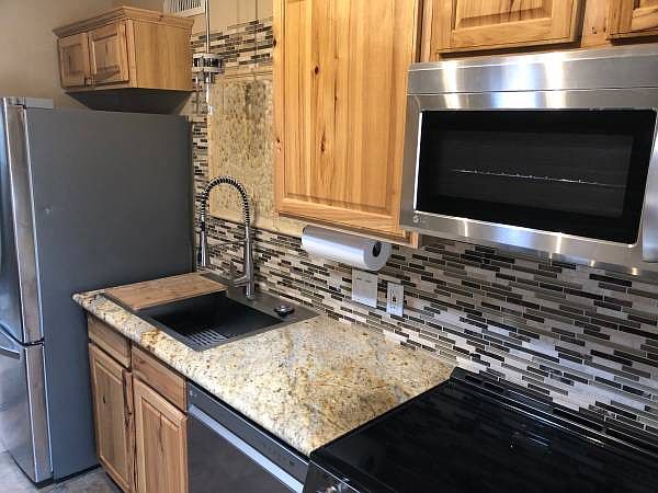 Spectacular 1 bedroom townhouse near St. TMC Hospital. Gourmet kitchen with stainless steel appliances, granite counter tops, bar/workstation in kitchen, enclosed back patio and built in 55" flat screen TV. Large laundry/storage room.