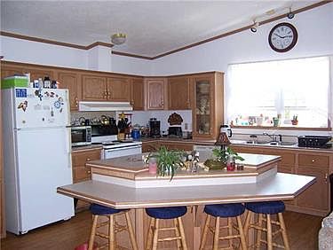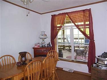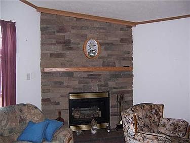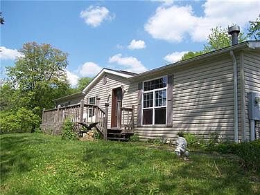 2003 double wide manufactured home (not on wheels), open floor plan. Kitchen with tiered center island with seating. LR accented with floor to ceiling stone fireplace. Master with jetted tub & walk-in closet. Laundry room leads out to covered back porch. Small pond in side yard is wired & ready to be restarted. Two car detached garage also 2003. Barn & shed older. Gas royalties/rights will transfer to new owner.