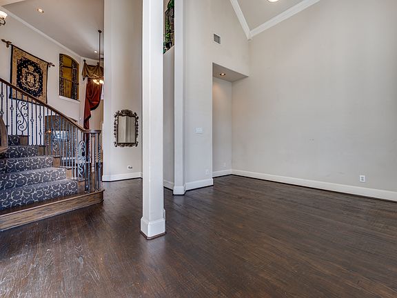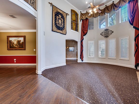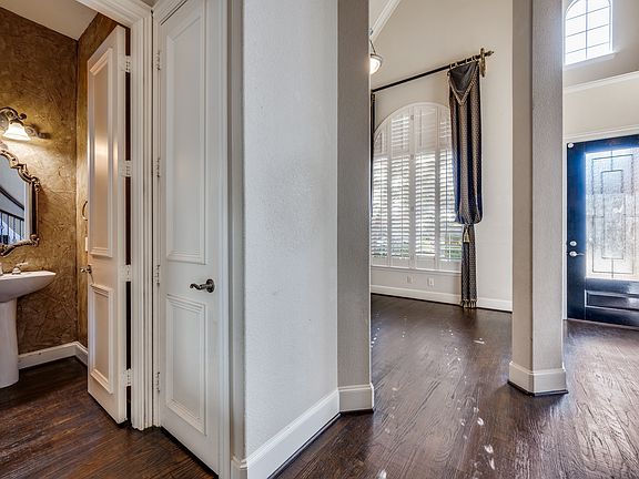3-bed, 2.5-bath with media room Valley Ranch home with a private pool and spa. Floor-to-ceiling windows and vaulted ceilings bring abundant natural light. Upgrades include hand-scraped hardwood floors, plantation shutters, custom walk-in closet by Closets By Design, designer iron chandeliers, and a dramatic wrought-iron spiral staircase. Kitchen features custom glass-front cabinetry and window treatments. Primary bath offers a large jetted tub and separate shower. Media room with built-in speakers and whole-home audio. Landscaped backyard with antique courtyard fountain. Located 1.3 miles from major shopping, dining, parks, coffee, and Home Depot; 1.5 miles to Target, Kroger, and MacArthur Park; 7.7 miles to DFW Airport. Easy access to 635, President George Bush Turnpike, and 114.
