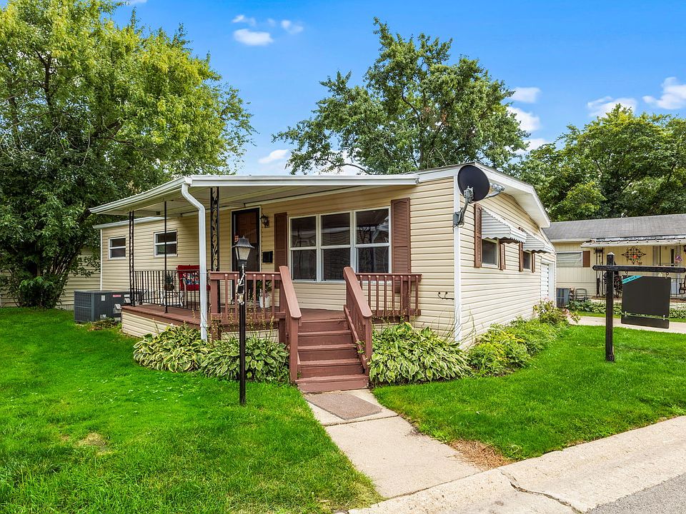 Welcome to your perfect retreat in Willow Lake Estates! This charming mobile home offers a comfortable and convenient 55+ community lifestyle along the serene Fox River. Boasting 2 bedrooms and 1 bathroom, this immaculate abode is the ideal size for easy living. Step onto the inviting front porch and be greeted by the tranquil surroundings. The property features a 2-car garage, ensuring ample space for parking and storage. Enjoy peace of mind with a brand-new roof and HVAC system, promising worry-free living for years to come. Inside, revel in the fresh updates, including new carpet, vinyl plank flooring, and paint, creating a modern and stylish ambiance. The in-unit washer & dryer adds convenience to your daily routine, while the walk-in closet provides ample storage space. Embrace the community's perks with access to the clubhouse, pool, and fitness center, perfect for socializing and staying active. For nature enthusiasts, nearby bike trails and proximity to I90 offer endless outdoor adventures. Don't miss the chance to call this newly remodeled mobile home yours and relish the joys of riverside living.