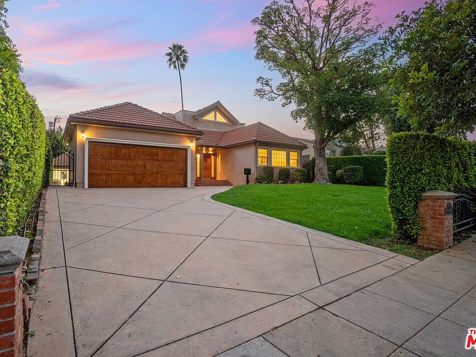 Perfect for entertaining, this stunning 4 bedroom 4 bathroom Brentwood home sits on the border of Santa Monica on a sprawling 8,984 sq ft lot with passthrough and double garages on an extra long driveway. The bright living room opens to a large grassy backyard and patio. Three en-suite bedrooms are located on the main level, while a private upstairs primary retreat features soaring A-frame ceilings, abundant natural light, a spacious balcony, dual walk-in closets, and a full bath. Additional highlights include skylights, built-ins, French doors, and a flexible second garage. An exceptional location close to Brentwood Village and the best of the Westside.