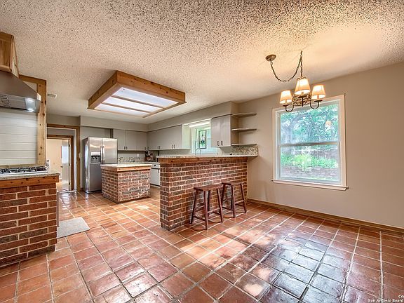 Wonderful home within the Whispering Hills Neighborhood in the highly desired Spring Branch area. This charming, 1-story, 2,221 sq ft, 4-bedroom, 3-bathroom, all brick home rests on a lot of 4.178 acres and boasts a multitude of upgrades including AC Unit replaced in 2021 / all 3 Bathrooms updated / installed Field Fence around entire property / added tankless water heater in 2021 / and upgraded well equipment 1.5 years ago. Tons of mature trees on this large property. The views from the back patio are absolutely gorgeous. The home features Saltillo Tile in the living/kitchen/dining areas. The open floor plan encompasses richly appointed spaces that include a sizeable living room with a Heatilator fireplace (complete with updated gas logs) that is surrounded by a stunning rock wall and oversized mantle. The open entertainment style island Kitchen comes complete with granite countertops, stainless steel appliances, breakfast bar and dining area, separate freezer area, and lots of cabinets for ample storage space. The spacious owners retreat boasts a walk-in closet and en-suite bathroom with porcelain tile flooring. There is an additional room that could be utilized as a potential in-law/dual master suite or game room/media room complete with en-suite bathroom and luxury wood look vinyl plank flooring. The 2 secondary bedrooms feature porcelain tile flooring. Additional amenities include a 1,500 sq ft detached 4+ car garage and a patio that overlooks a massive back yard with mature trees. This is a very special home within the Smithson Valley Independent School District that is conveniently located closely to Hwy 281, SH 46, FM 3159, and FM 311. It is only minutes away from Canyon Lake and near numerous shopping, entertainment, education, and dining locations. This is country living at its finest and this amazing property will not last long...Don't miss the opportunity to make this wonderful house your home!