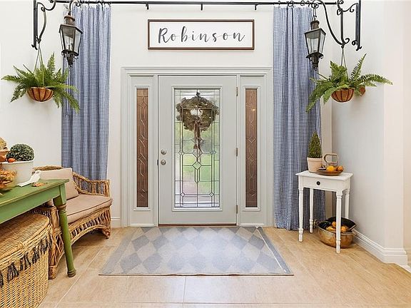 Lush landscapingBrick accentsBourbon barHand-painted cabinetrySurrounded by new decksReclaimed wood doorsSlate countertops