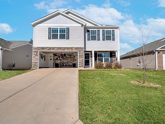 Welcome Home to this nearly new 4-bedroom 2.5 bath with a flex room/office/workout area! This "Penwell J" model is one of the most spacious floorplans! The granite counters and island kitchen and living room fireplace allow you room to cook, conversate or supervise activities all at once! The cabinets feature soft close doors and crown molding accents on upper kitchen cabinets. Whirlpool stainless steel appliances with gas stove. And Tankless Gas Water Heater included! The downstairs flex room is currently used as a yoga/workout room, and the upstairs also has a home office area or could be that 4th bedroom. Owner's Suite with an impressive walk-in closet plus spacious bath with oversized shower. And you will have access to the neighborhood pool, too! The owners have taken excellent care of the home and have added a 10 x 12 storage building. The LVP floors, spacious rooms, appliances which include refrigerator, washer and dryer, microwave, dishwasher and location make this one MUST-SEE. The sellers are offering the buyer's agent who brings a full-priced accepted offer that closes on or before March 1, 2026, a $2,500 VISA gift card. Level lot with treed property behind give you privacy and you are close to shopping, schools, restaurants and just minutes from I-26! Don't delay - call for your appointment today!
