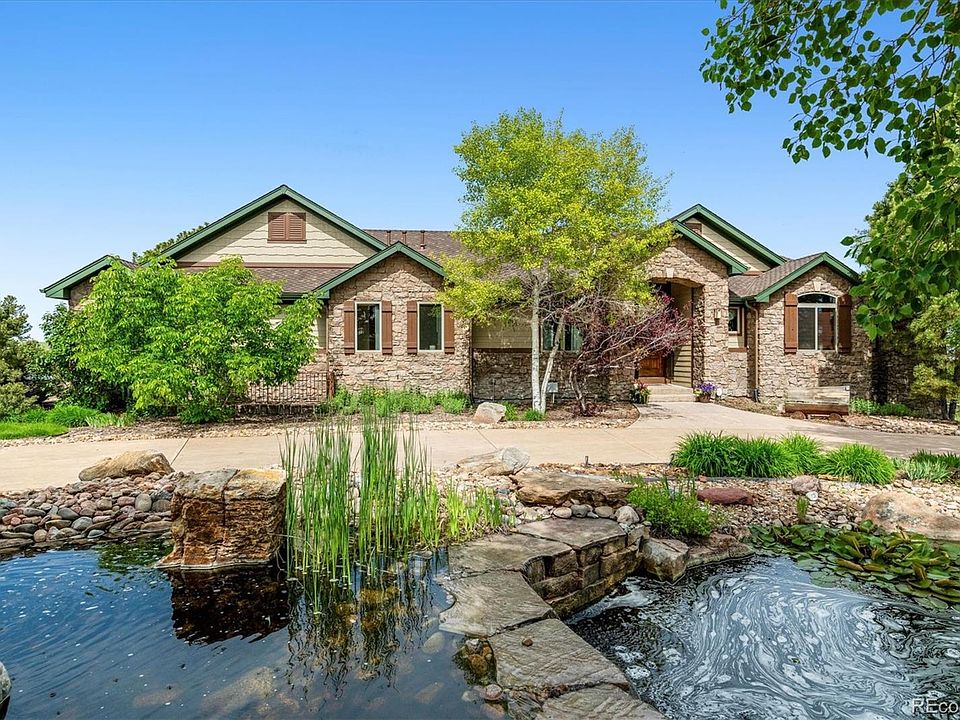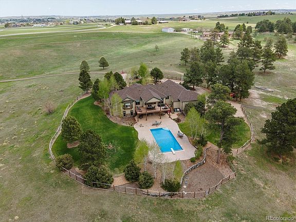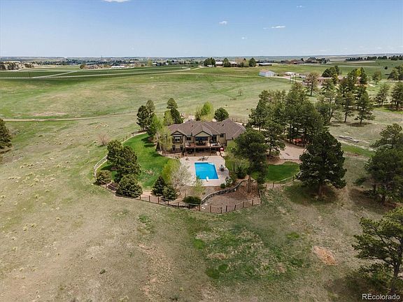 Looking for Paradise in Colorado on 38 acres with views for miles? Yet conveniently located close to downtown Parker and easy access to major roads? Peace, privacy & all the land you need to live your perfect life. Sheep, cows, horses, all possibilities are here for you. This custom home, built by an old school builder for his own family where quality is the cornerstone. The ranch floor plan with walkout basement is one of the most sought after in Colorado. The grand entry leads to an open great room with sweeping views of the front range and a cozy fireplace. The kitchen will thrill you with the huge island, custom alder cabinetry, granite countertops, double oven, convection range, and prep sink. Off the kitchen is a dining room, large laundry room, powder room and access to the 4 car garage - a huge covered deck to take in the views and spend time with friends and family. Be prepared to fall in love with the master bedroom - vaulted ceilings, two sided fireplace, five piece bathroom and huge walk in closet. The large guest bedroom with en-suite bathroom and walk in closet complete the main floor.