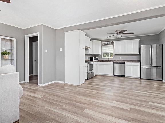 Completely updated gem with roof replaced in 2025. Air/heat, electrical service, tankless water heaters have all been replaced, per seller. Sits on a corner, very private lot. Laminiate wood floors.