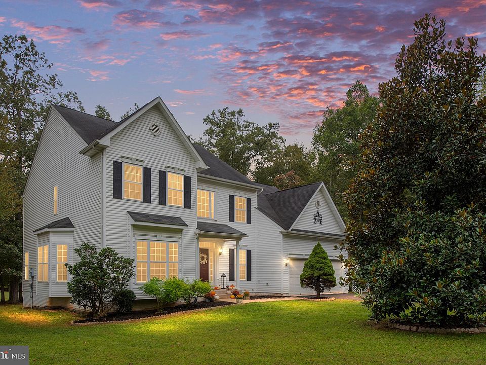 This 2025 remodel of a Classic Colonial estate on 13+ acres offers nearly 5,000 sq ft, three finished levels, and an open, light-filled floor plan. Imagine gathering with loved ones in a show stopping kitchen featuring quartz countertops, waterfall backsplash, 10-foot island, and gold accents. The perfect backdrop for holiday entertaining, this reimagined space is truly the heart of the home. The grand foyer and family room boast soaring 18-ft ceilings with sweeping views of a landscape dotted with mature fruit trees. Formal dining and sitting rooms are framed by stately columns, while light oak engineered hardwood flooring flows throughout the main level and up the staircase, accented by striking black railings and risers. The first-floor primary suite includes vaulted ceilings and a spa-style bath with soaking tub, step-in shower, and dual vanities. Upstairs, a spacious landing overlooks both the foyer and family room, connecting three additional bedrooms, a bonus room, and a full bath. The fully finished walk-up basement offers endless flexibility—whether you envision a home theater, gym, hobby space, or second family room. Multiple open areas allow you to customize to your lifestyle. An additional full bathroom and NTC bedroom complete this expansive lower level. Beyond the home, this horse-friendly property rests in the quiet, 17-home Waterford Estates community. Apple, peach, and fig trees dot the grounds, while the rear acreage holds mature forest and level trails—perfect for ATV rides, morning rides on horseback, or a tranquil walk to the seasonal Town Run Creek at the far boundary. Here, refined country living is more than a house—it’s a setting for seasons to unfold and memories to be made.