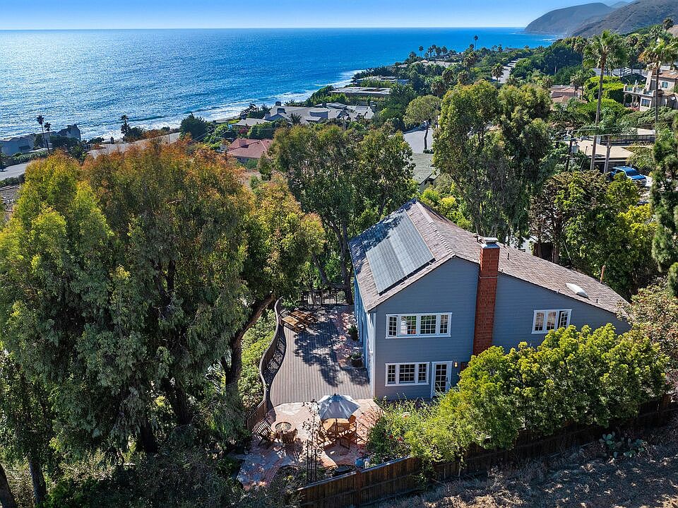 Cape Cod at County Line! First time on the market in 37 years - a rare commodity in this well sought after location with limited SFR's and neighboring properties selling over $20M. Don't miss this Incredible opportunity to acquire this adorable, warm, and ultra-private Cape Cod nestled across from renowned surf spot, County Line. Bright and spacious, this cozy 4 Bed/3 Bath spares no detail. Upon entrance, the generous living area with saltillo tile and custom wood burning fireplace awaits along with abundant natural light and ocean views by way of the ample windows and French doors throughout. Adjacent is the beautifully renovated kitchen complete with elevated finishes including cherry cabinetry, limestone countertops, and upscale appliances. The scenic mountain and ocean views resonate through all four bedrooms and continues through to the Trex decks and expansive backyard where you'll find a sweet enclosed vegetable and fruit garden surrounded by California native landscaping, winding brick and flagstone pathways embedded with sea glass, outdoor shower, and two stone water features which beckon birds and wildlife to the yard. To top it all off, this incredible parcel has a private gated driveway and fully finished 2-car garage with EV charging station, Tesla Powerwall for any unexpected outages, Solar Roof, newly installed Hardie Board non combustible siding, Roof sprinklers, and so much more. Truly a well thought out vision and a beautiful opportunity not to be missed!