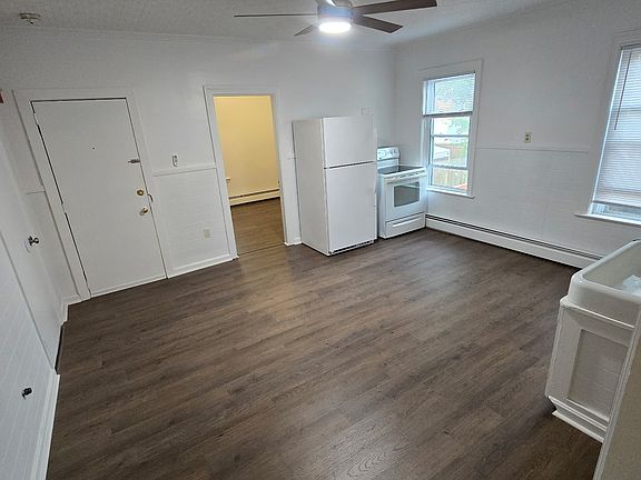 First floor apartment, freshly painted with new flooring. 2 bedrooms with off-street parking for 1 vehicle. Heat and hot water is included. Owner pays for water and heat . Tenant is responsible for electric, internet, cable. 1 year lease required. No smoking.