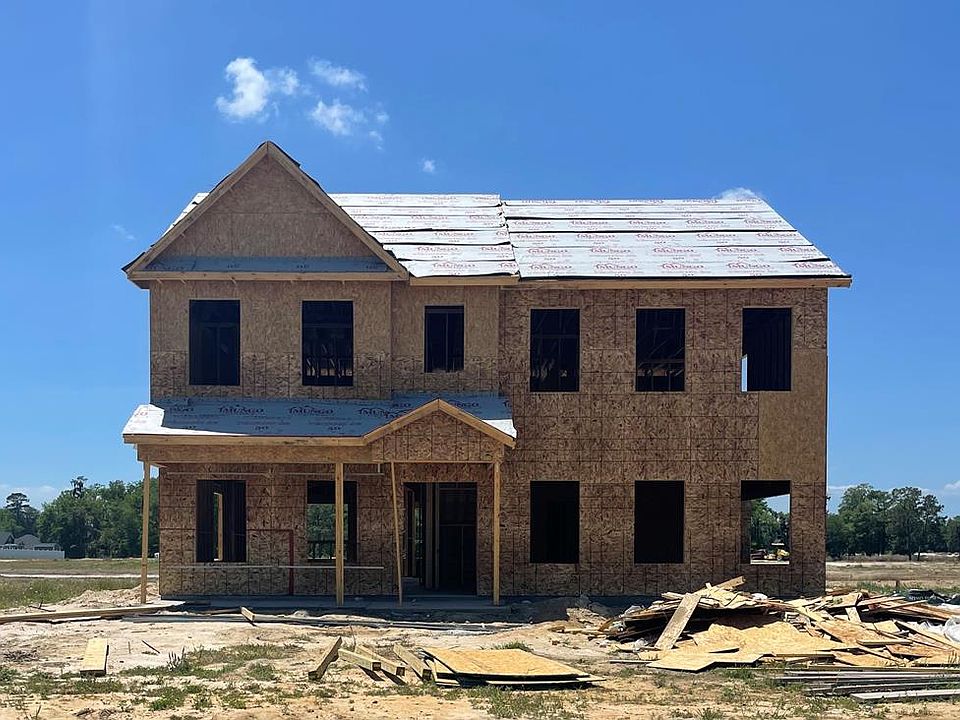 This Langford is a two-story home with five bedrooms and two and half baths. The foyer opens to the large family room and arched openings lead to the kitchen and dining area. A Sunroom and Guest Suite are also located on the main floor. Three upstairs secondary bedrooms all feature large closets. The primary suite features a sitting area, a large walk-in closet and a primary bathroom. The primary bathroom features a Double sink vanity, a separate tub and shower, with a water closet and plentiful storage.