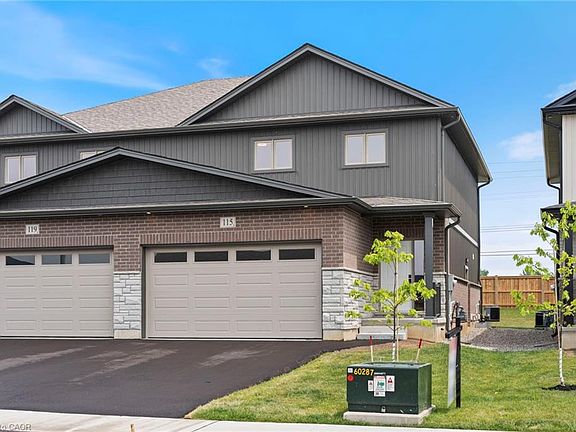 Potential Legal Suite – Fall in love with this stunning semi-detached 2-storey home located in the Villages of Waterford subdivision in Waterford! Boasting 1,775 sq. ft. of thoughtfully designed living space, this home features a spacious 3-bedroom, 2.5-bath layout with upstairs laundry and an attached double-car garage. Step inside from the covered front porch into a bright foyer leading to an open-concept kitchen, dining nook, and great room. The kitchen is a chef’s dream, complete with custom cabinetry, quartz countertops, island with breakfast bar, pantry, pot/pan drawers, pull-out garbage/recycle bins, and soft-close doors/drawers. Durable luxury vinyl plank flooring runs throughout the main floor, upstairs bathrooms, and laundry room. The primary suite includes a 4-piece ensuite with tub/shower combo and a walk-in closet, while 9 ft ceilings on the main floor and 8 ft ceilings in the basement create an open, airy feel throughout. The basement is undeveloped, featuring in-floor heating and the potential for a 1-bedroom legal suite, ideal for rental income or multi-generational living. The home also offers modern comforts such as central air, tankless hot water, programmable thermostat, fibre optic internet, and rough-ins for central vacuum and contemporary lighting. Outside, enjoy landscaped front and rear yards, durable brick, stone, and vinyl exterior, and ample parking with an 8 ft garage door plus driveway space for 2 additional cars. Conveniently located near schools, shopping, and grocery stores, this home is perfect for families or investors alike. New construction, modern features, and endless possibilities – welcome home! Licensed Salesperson in the Province of Ontario has interest in Vendor Corp.