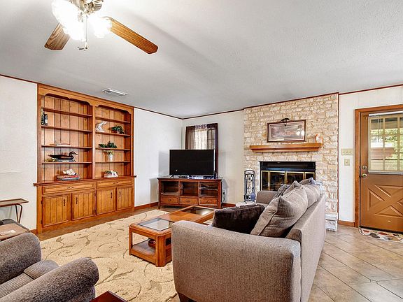 Welcome to this well-maintained ranch-style home, set on a huge 0.34-acre lot in a charming neighborhood with mature trees and a sense of community. With a lot this size and no HOA, you’ll enjoy flexibility, freedom, and countless possibilities for the outdoors. The spacious family room features custom built-in bookshelves, cabinetry, and a floor-to-ceiling stone fireplace that adds warmth and character to the space. The kitchen offers abundant cabinet and counter space and opens to a large dining room, making it ideal for both everyday meals and entertaining. Tile flooring runs throughout the main living areas for easy maintenance and durability. The primary suite includes a large walk-in closet, offering plenty of storage. Outside, a large covered patio overlooks a backyard retreat—surrounded by trees for privacy and green views, with ample space to play, garden, host gatherings, or simply relax outdoors. You’ll also appreciate the low tax rate of just 1.40%. Plus, this location balances the feel of country living while still being just minutes from shopping, dining, and entertainment in New Braunfels, and only 30 miles from San Antonio. Don’t miss your chance to make this charming property your own!