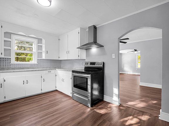 Nicely remodeled house in super convenient location only 1/2 mile to I-85. This house is move-in ready. 2 bedrooms that are good sized and 1 bath that has been remodeled. Kitchen has ample cabinet space, new c/tops, tile backsplash and newer appliances. Large family room and formal dining room too. Bath has new vanity, toilet and updated tile surround tub/shower. The central HVAC was installed in 2020 and the roof is approximately 6 years old. Lots of additional updates such as flooring, paint, light fixtures, door knobs, etc. There is a double door entry into the crawlspace that could be a great space to store items or even have a workshop area. Backyard is fenced with double gate on right side. Front porch is covered, concrete driveway large enough for 2 vehicles. So close to all city amenities and walking distance to many restaurants, stores and convenience centers. Schedule your appointment today!