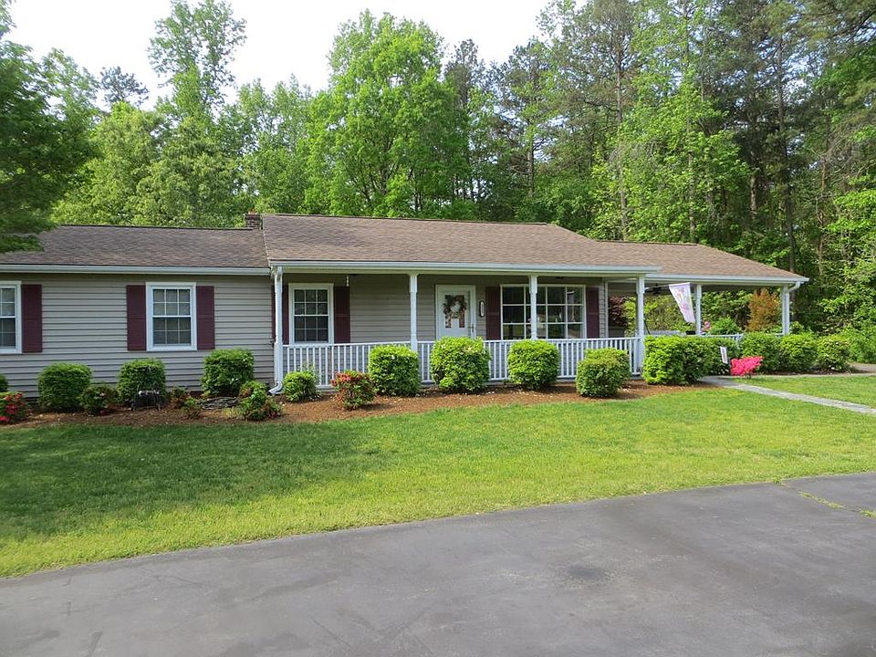 LOW MAINTENANCE VINYL ranch convenient to Danville and Chatham....SPACIOUS GREAT ROOM, open concept, GRANITE KITCHEN COUNTERTOPS, main level laundry, REPLACEMENT WINDOWS, architectural roof, basement with MAN CAVE/ROCK FIREPLACE/GAS LOGS, BAR/POOL TABLE, ideal for entertaining, DOUBLE CARPORT, SCREENED PORCH/DECK, PATIO, beautiful landscaped wooded lot, detached workshop and much more!