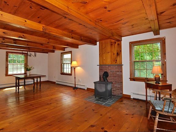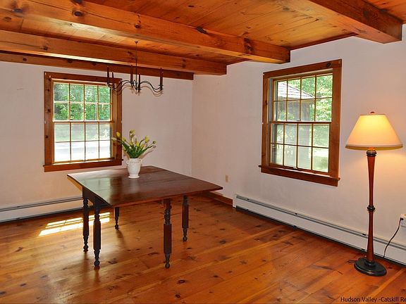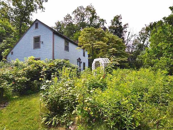 A little bit of Paradise at a little price. This Saltbox style home sits privately on 1.3 acres, surrounded by perennial gardens, near the border of Hurley and Stone Ridge. A long winding drive leads through the land to the rear. Walk to the front of the home and the Secret Garden unveils, enhancing a feeling that all is well. Inside the colonial style is emphasized with wide plank pine floors and hand hewn ceiling beams from the Broad Axe Beam Co. in Vermont. The Living and Dining Rooms are open floor plan. There is a large first-floor bedroom and bath with a deep jetted tub, then two very large bedrooms upstairs with ½ bath between. The Eat-In Kitchen has a recently installed gas cooktop and plenty of room to arrange as you'd like. The out-buildings here are everything you could want: a Baby Barn, and a large, high-ceilinged 780 sq ft Garage with plenty of room for cars and a workshop. It has a built-in work-table, concrete pad, electric, and a fitting for a woodstove. Just off the deck in the back of the home is a screened octagonal Gazebo, a perfect place to enjoy the gardens on a summer night. Originally built by an Antique Dealer and Collector, a sense of place and the comfort of history is felt in this home and gardens, and just might capture your heart. Walk to the Rail Trail from here.