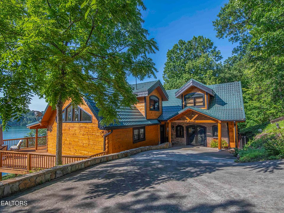 Escape to this stunning 4,700+ sq ft Norris Lake lakefront log home nestled on 4.34 wooded acres with spectacular lake and mountain views. Perfectly positioned on deep year-round water, this fully furnished retreat offers the ultimate blend of rustic elegance and modern comfort.