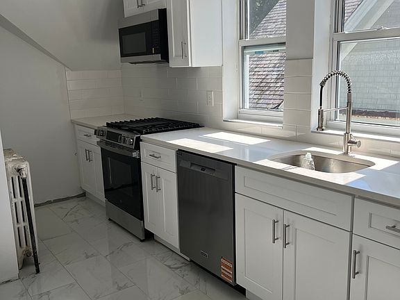 Remodeled apartment in desired East Rock neighborhood! Brand new kitchen with stainless steel appliances, white cabinets, granite countertops and marble floors. A deep pantry handy for food or other storage. 2 full baths, one is remodeled with marble floors and new vanity. Living Room/Dining Room is well lit with skylights and beautiful new hardwood floors and is cooled by a window unit. The three bedrooms all have refinished hardwood floors, generous closets and window a/c installed. Washer/Dryer in the unit. Conveniently located near the many shops and restaurants on both Orange and State Streets. Walk to downtown as well as the Audubon Arts Area. On Yale Shuttle route as well as city bus lines. There is one off-street parking space and the street has zoned parking for residents. Application $40 per person, which includes a credit/background check. Good credit and references required. NO smoking and NO pets on property. $2500 per month includes heat/hot water. Make an appointment to see this listing now!