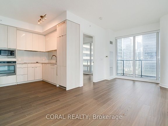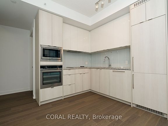 This stunning 3-bedroom corner suite offers an open-concept layout with a spacious living and dining area that opens onto a large balcony. The modern L-shaped kitchen features built-in appliances, providing a sleek and functional cooking space. This bright and quiet unit boasts excellent soundproofing and floor-to-ceiling windows that fill the space with natural light. With a southeast-facing 260 sq. ft. wrap-around balcony, you can enjoy a pleasant, stable temperature throughout the day in all seasons.The suite features smooth 9-foot ceilings, wide plank laminate flooring, and blinds throughout. The balcony offers views of the rooftop garden and the city skyline. Steps To Fine-Dining, Shopping, Entertainment, The P.A.T.H To Subway & 24Hr Streetcar And Highway.