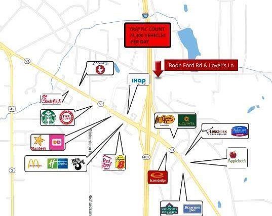Great value in lot w 3 bldgs, great income potential! 2 older mobile homes & commercial garage/workshop. Live in or rent out! 1 mobile has long-term tenant. Homes on private wooded area, need TLC. Garage on open lot w lots parking, now vacant, use or lease out. Great commercial value w sign visibility from I75 Near shopping, restaurants & hospitality at 75/Hwy 53 Exit. One side on Lover's Lane w/high visibility fr I75 & Boone Ford Rd w/easy access in & out. Currently zoned residential but some or all could possibly be zoned commercial.