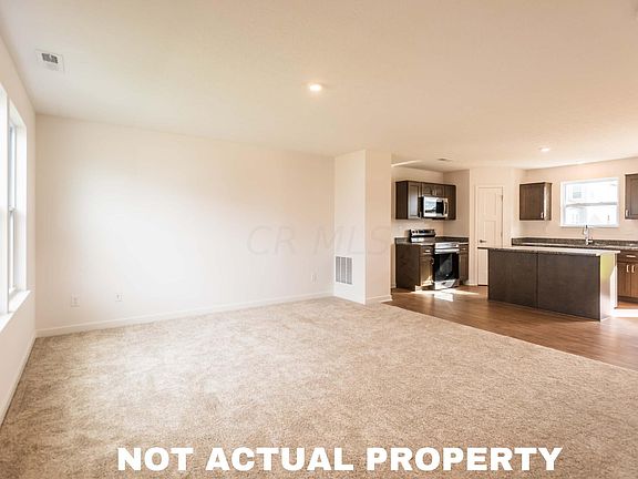 Welcome to this delightful home nestled in the picturesque town of South Bloomfield. Overlooking a well-maintained pond, this lot offers beautiful views and enhanced privacy. The kitchen is equipped with sleek stainless steel appliances, ample cabinetry for storage, and a convenient island that provides additional counter space. The primary bedroom boasts over 250 square feet of space and features a private bathroom complete with quartz countertops, premium flooring, and a glass shower door. Additional features include an upstairs laundry room and an attached two-car garage. Enjoy the tranquility of a small-town atmosphere while having easy access to nearby amenities and major highways.