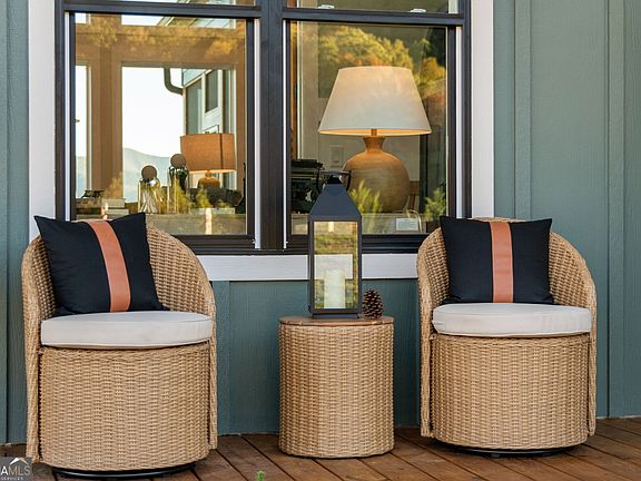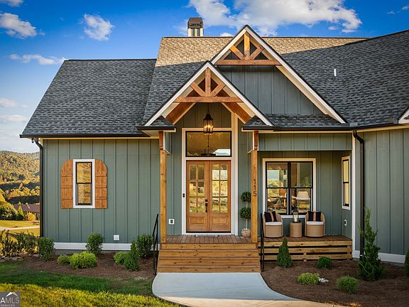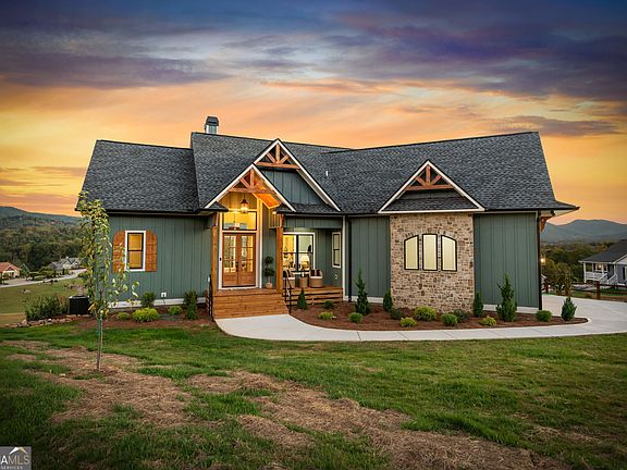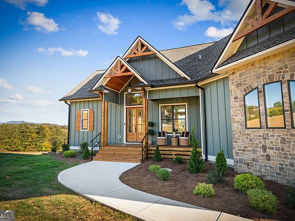 Discover this stunning new construction Craftsman-style home, perfectly situated on a full finished basement and designed to enjoy the beautiful mountain views of Brasstown Bald. From the inviting front porch with its cedar accents to the detailed trim work and gabled rooflines, every inch of this home exudes timeless charm and quality craftsmanship. Inside, you'll find an open and airy floor plan filled with natural light. The spacious great room features a cozy real stone gas-log fireplace, custom built-ins and a vaulted ceiling with wood beams. The wall of windows frame the breathtaking mountain views. Every window draws your eye to the stunning scenery, creating a peaceful and airy atmosphere that makes the outdoors feel like part of the home. There is a seamless flow into the gourmet kitchen-complete with designer cabinetry ,quartzite countertops, a full quartzite backsplash, and a large island perfect for entertaining. The upgraded cafe' appliances include a french door refrigerator with Keurig K-cup brewing system and a french door oven. The main-level primary suite offers a private retreat with a tongue and grove ceiling, accent wall with wood paneling and picturesque views from the large windows. The primary luxurious spa-style bathroom features a tile shower with glass surround and generous walk-in closet with custom shelving. Also on the main level are two additional bedrooms, a full bath and an office. Downstairs, the fully finished basement expands the living space with another inviting fireplace, a second primary suite, and a bar area complete with a stand-alone ice machine and wine refrigerator - perfect for hosting guests. The lower level also includes a conditioned workshop/garage, ideal for hobbies, projects, or extra storage. From the main level, step out onto the screened back deck, where you can relax and take in long range mountain views from every angle. The tongue-and-groove ceiling adds warmth and craftsmanship to the space, while the screened enclosure allows you to enjoy the fresh air year-round, free from the elements. It's the perfect place to unwind, entertain, or simply enjoy the peaceful mountain setting. Additional features include 9' wide LVP coretec plank flooring, an upstairs finished bonus-room, custom lighting throughout, formal entry with custom built entryway bench for coats and shoes. This exceptional home is being offered fully furnished with all-new, high-end pieces, allowing you to move right in and start enjoying the mountain lifestyle immediately-just bring your bags. Set in the heart of the charming mountain town of Young Harris, you'll enjoy the peace of mountain slopes, yet be just minutes from the vibrant lake town of Hiawassee and the alpine-style village of Helen.