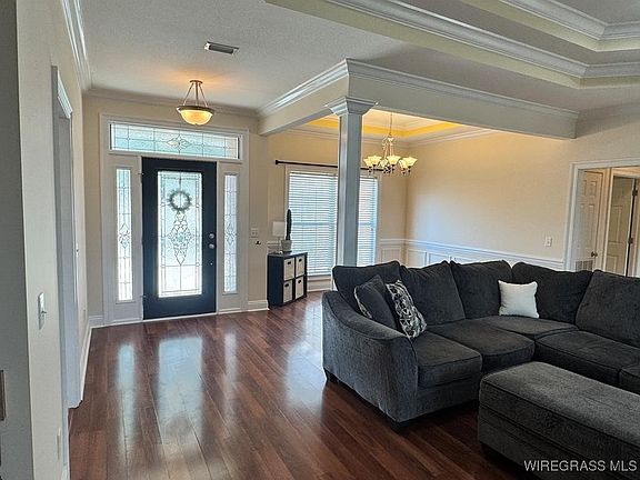 Welcome to this charming 3-bedroom, 2-bath brick home tucked away in a quiet, friendly Dothan neighborhood. Inside, you'll find a spacious living room with beautiful built-in cabinetry, detailed trim work, and plenty of natural light, open to the kitchen for a comfortable, connected feel. The open-concept dining area is filled with sunlight, creating a warm and welcoming space that's perfect for gatherings or everyday living. The kitchen also enjoys great natural light, making it a cheerful hub of the home. The master suite offers a true retreat with tray ceilings, dual walk-in closets, a relaxing jetted tub, separate shower, and double vanities with ample storage. Additional highlights include an indoor laundry room, ceiling fans throughout, ceramic tile flooring, and a 2-car garage with automatic openers. Step outside to enjoy the covered back porch and privacy-fenced in backyard, complete with a storage building and mature fruit trees, including mulberry, grape, blueberry, plum and peach. All of this just minutes away from shopping, dining, and everything Dothan has to offer. Comfort, charm, and convenience, this home has it all!