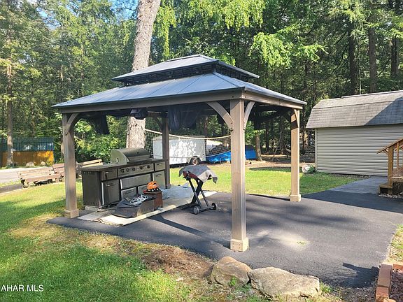 Enjoy the ambiance of camping with the comforts of home. Whether you are looking for a place for the whole family to get away to, or a cozy full time residence you need to take a look at 115 Brookside Circle. Start with the paved driveway. Enter into family gathering room which is over 200 square feet. But there is more: two bedrooms, another living space, a kitchen with a nook and a stackable washer / dryer. Outside the cute pavilion allows you to cook on the amazing grill regardless of the weather. Or make a few mountain pies while visiting around the fire pit. The storage shed will hold your toys and tools.