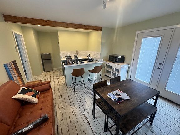 Newly renovated 1 bedroom 1 bathroom guest suite with washer/dryer, air conditioning and fireplace. The living room offers ample space for relaxation and is adjacent to an open concept, eat-in kitchen. Everything was renovated and installed brand new 9 months ago, including the washer/dryer. All utilities (including internet) are included and storage space is available as well as off street parking. The exterior is well maintained and French doors lead to a lovely outdoor area - the perfect spot to enjoy breakfast or a cup of coffee. Centrally located just minutes from the Plaza and walking distance to both DeVargas and Solana shopping centers.