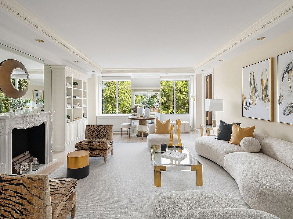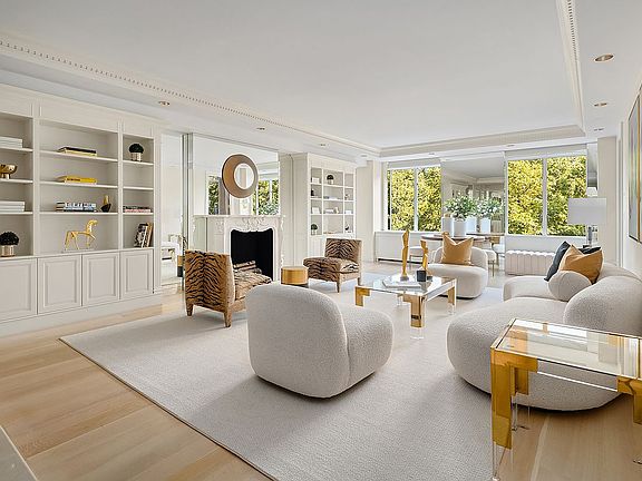 The primary suite faces Central Park and has a walk-in closet, a wall of built-ins, and a five fixture windowed en suite bath.