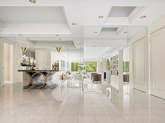 The west-facing dining room also benefits from beautiful afternoon light and is lined with custom cabinetry and two fridge drawers; it is large enough to accommodate large gatherings. Adjacent, the windowed eat-in kitchen has a Viking vented cooktop, double Viking convection ovens, SubZero fridge, Miele dishwasher and full-size vented washer/dryer. The kitchen and adjacent windowed office are centrally cooled.