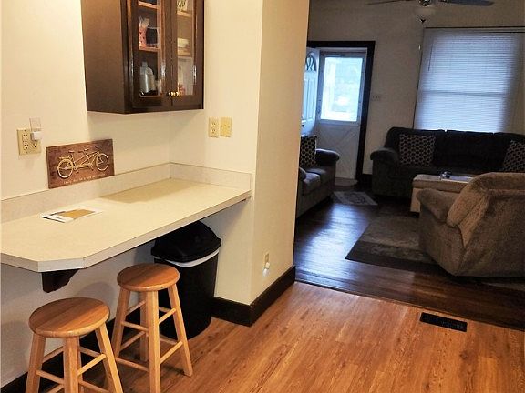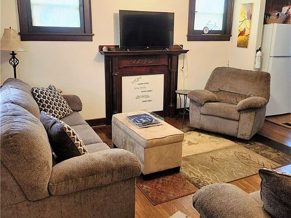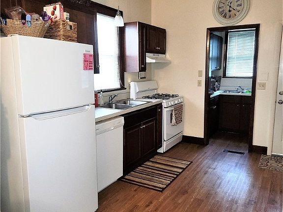 Charming 1-1/2 story in West View w/classic touches such as original oak hardwood floors, door/window frames and baseboards, 9ft ceilings and pushout stained glass windows. Open from the livingroom to the kitchen which boasts newer appliances, a breakfast bar, dual sink, and walk-in pantry offering plenty of storage. For those looking for one floor living, the home boasts two bedrooms on the first floor with the master just off of the livingroom and the 2nd bedroom (currently being used as a dining room) at the back of the home. The full bathroom is conveniently situated between the two. Upper level of the home offers an additional bedroom with original pine floors and abundant storage! Full unfinished basement is clean is dry – ready for whatever you need it to be! New furnace, insulation & more! Front and back porches, 1 car detached garage, graveled parking pad and fenced back yard complete the home. Highly walkable, near public transportation and easily accessible to all locations!