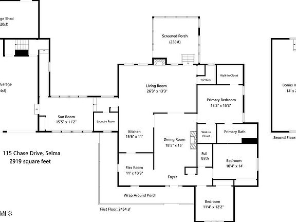 Welcome to 115 Chase Drive - a nature enthusiast's dream on 1.25 acres and only 1.5 miles from Flowers Plantation. Peaceful is an understatement! Situated on a private cul-de-sac lot, this almost 3,000 sqft home lives like a ranch. All rooms are located on the first floor with the exception of the large bonus room, located on the second floor. Formal living room includes vaulted ceiling, masonry fireplace, and site finished woods floors. The back living room gives cozy lodge vibes with it's wood walls and ceiling. The primary suite includes two walk-in closets and a renovated bathroom. The two spacious secondary bedrooms offer wood flooring and a renovated guest bath. Both porches are a dream! The wrap around front porch and back screened-in porch offer the perfect spots to sip coffee and watch nature. The kitchen offers stainless steel appliances, freshly painted cabinets, & new subway tile backsplash. Car lovers and hobbyists will LOVE the oversized garage - freshly painted, workbench area, 200+ sqft storage closet, and a covered lean-to for extra storage. Come see why 115 Chase Drive is a one-of-a-kind property!