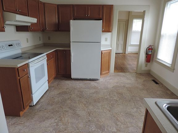 1st floor, 2 bedroom apartment in 2 family home. New carpet. Dining room plus eat-in kitchen. Walk in pantry. Wrap around Victorian front porch. Natural gas heat. Garbage removal and lawn care are included. Private laundry is provided in basement via convenient, inside stairs. Off street parking.