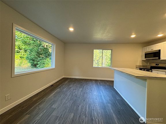 Don't miss this updated home with shop on acreage in Longview! This 4 bed, 2.5 bath, 2154 sq ft home has a nice floor plan, spacious living room w/ fireplace, kitchen w/ breakfast bar and adjacent dining area, laundry room, and primary suite. Updates include new interior & exterior paint, flooring, cabinets, counters, stainless appliances, and more. Also has a detached 3-bay shop, room for RV parking and extra vehicles. This home is fresh, clean, and ready to move in!
