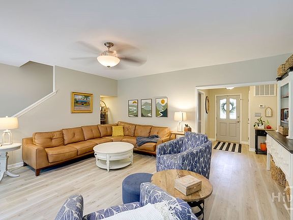 Spacious 4-bedroom plus bonus, 2.5-bath home on a .47-acre lot in Forest Cove. The first-floor owner's suite has vaulted ceilings, his & her closets and a renovated bathroom. Also downstairs: bright living room with fireplace, flexible bonus room (Den/Home Office), formal dining room, and large kitchen with stainless appliances and solid-surface counters. Upstairs are three bedrooms, a large bonus room, and a shared bath. The landscaped lot includes a wood privacy fence. Enjoy quick access to I-95, Southside, and downtown Savannah. Operable gate, community dock, tennis courts, and pool make Forest Cove a unique and desirable community!