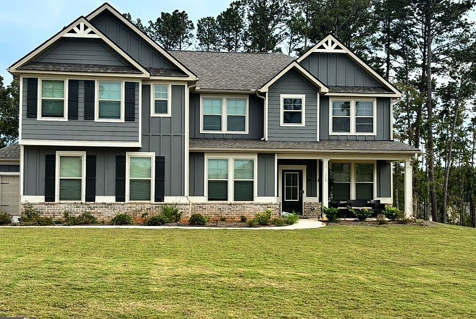 This Stunning approx. 3843 sq. ft., 5 bedroom, 4.5 bath Estate with one bedroom being on the Main level, sits Gracefully on a private 1-acre lot with a Covered front porch and Full sprinkler system, offering the perfect balance of Elegance and Comfort. From the moment you step inside, you'll be greeted by Soaring Coffered Ceilings in both the Family and separate Dining room, setting the home for refined living. The heart of the home is the Gourmet, Open-Concept kitchen, boasting a Large island with Beautiful Solid Surface Marble countertops and seamless flow into the Spacious family room - a dream layout for both everyday living and entertaining. The Oversized Master retreat features a Spa-like bathroom with a Freestanding Soaking tub, Solid Surface Marble countertops, and Exceptional finishes that make it a True Sanctuary. Upstairs, a Large Loft offers additional space, while Generously Sized bedrooms include a well-appointed Jack-and-Jill bathroom for convenience and style. A 3-car garage provides ample storage and parking, completing this exceptional property. This Beautiful Home sits on a 1-acre lot.