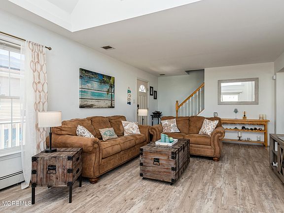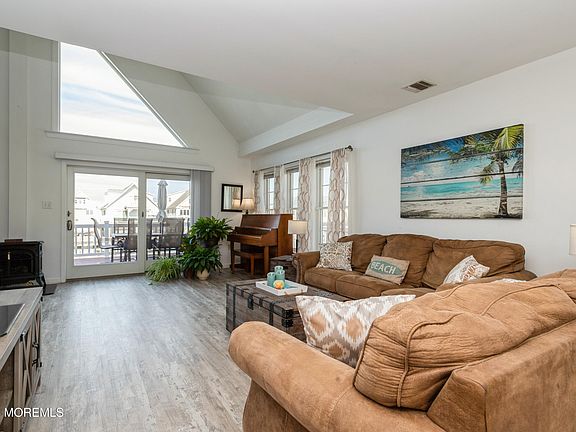 Quick bay access. Luxurious upscale waterfront 2000 sq ft 3 bedroom 2.5 tiled bath home w/vinyl bulkhead, 25 ft fixed dock & 38 ft floating dock, Cathedral ceilings, trapezoid windows overlooking water enhance dual 8 foot sliders lead to 12X28 maintenance free composite rear & side decking w/vinyl wrapped railings- stairs in front & rear of home. Ample cabinets & counters in spacious kitchen w/breakfast bar. Large tiled laundry/pantry & convenient utility sink. Your main level master bedroom boasts lovely full bath (stall shower, double vanity and jetted soaking tub). Two more spacious bedrooms & full bath on upper level w/landing/sitting area to enjoy the views. Outside shower. Stoned landscaped. 1344 sq foot over-sized garage with interior access and so much more. MUST see! Great bay views from the back deck. The home has 2x6 construction with Anderson doors and windows. Luxury vinyl plank flooring through the 1st level main living area, kitchen, hall, and master bedroom with carpeted stairs and upstairs only a few years young. The central air system was fully replaced in 2017, inside and out, including all the flex tubing in the attic. Stainless steel appliances (range, microwave and dishwasher are GE Profile, Whirlpool refrigerator with ice maker are a couple year old). The refrigerator and deep chest freezer in garage are included). Home furnishings (inside and out) are negotiable.