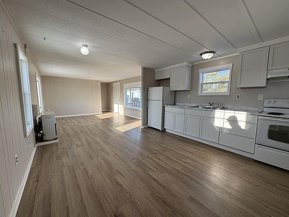 Newly renovated and filled with natural light, this charming 14x70 mobile home offers a comfortable and updated living space in the heart of Pittsfield, Maine. Built in 1979, the home features fresh renovations throughout, including stylish new flooring, updated cabinetry, and modern finishes. The spacious, open-concept layout enhances the bright and airy feel of the home. Enjoy the convenience of a master bathroom with laundry hookups, adding ease to your daily routine. Two large decks provide privacy and ample outdoor space for relaxing or entertaining. Situated on an in-town lot with easy access to I-95 less than a mile away, this home offers both comfort and convenience in a desirable location.